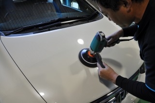 洗車してワックスをかける、一般的なお車のお手入れ方法です。一見綺麗になったように見えるこのお手入れ方法も、問題がないように見えますが、塗装の表面をを拡大してみると、ワックス時についた無数の微細なキズと、洗車で取りきれない汚れ、古いワックスの残りかすなどで、塗装本来の輝きとはいえません。しかもお客様がワックスを塗れば塗るほどワックス時のキズは増えて、光沢は失われていきます。光沢を出すためにまたワックスを塗る、という悪循環になってしまうのです。そこで弊社では塗装を磨く技術でお客様のお車の塗装が本来持つ光沢ある姿に戻すことが出来ます。この加工はキズに入り込んだ汚れを完全に除去し、そのキズ自体を均すことで、高い塗装の輝きを得るのです。 新車時も同様で、塗装本来の光沢を引き出すことが出来るのです。