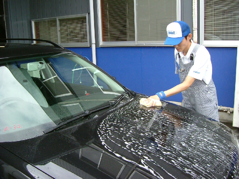 ボディ表面の汚れを洗剤で洗浄しながら、塗装面をチェック。 キズ、劣化の状態などを丹念にチェックします。